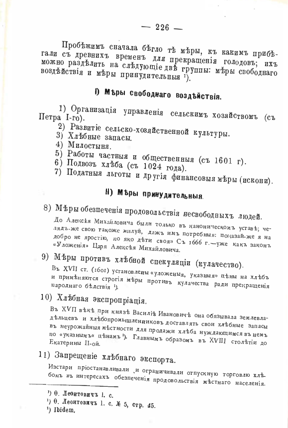 "Пробежим сначала бегло те меры, к каким прибегали с древних времён для прекращения голодов; их можно разделить на следующие группы: меры свободного воздействия и меры принудительные: