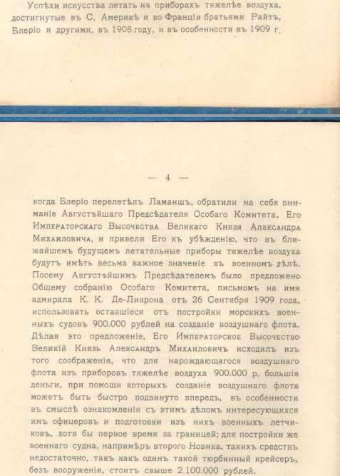 "Милостивый государь, Михаил Владимирович. Ваше превосходительство через вашего агента во Франции обратились к генералу Жоффру и г. Альберу Тома с телеграммой о предоставлении русской армии аэропланов, определив по своему усмотрению число и систему их, вне связи с той общей программой, которая выработана по общему соглашению между ними, французским и английским правительством по этому вопросу. Копию ведённой вами переписки, но уже после отправления своей телеграммы, вы препроводили в.к. Александру Михайловичу. По докладу Государю Императору этой переписки, его величество повелел передать вам его волю, чтобы вы устранили себя от непосредственного вмешательства в военные вопросы, не входящие в круг ведения ни председателя Г. Думы, ни члена Особого Совещания. Дело, в котором окажется несколько хозяев, считаюших себя друг от друга независимыми, одинаково компетентными и полновластными в своих распоряжениях, в самом непродолжительном времени будет доведено до полного развала. Прошу принять уверение в совершенном моём почтении и преданности. Михаил Алексеев."