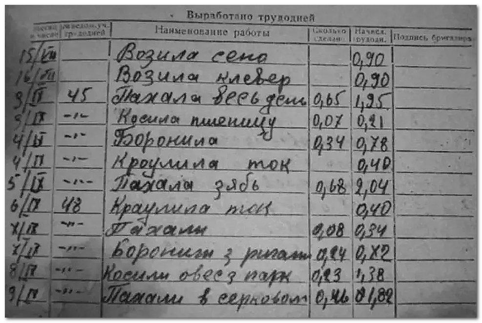 Для этого были введены "трудодни", т.е. мера измерения вклада колхозника в общее дело. Причем это не рабочий день, в прямом понимании. За один день колхозник мог выработать несколько трудодней, в зависимости от тяжести и интенсивности труда.