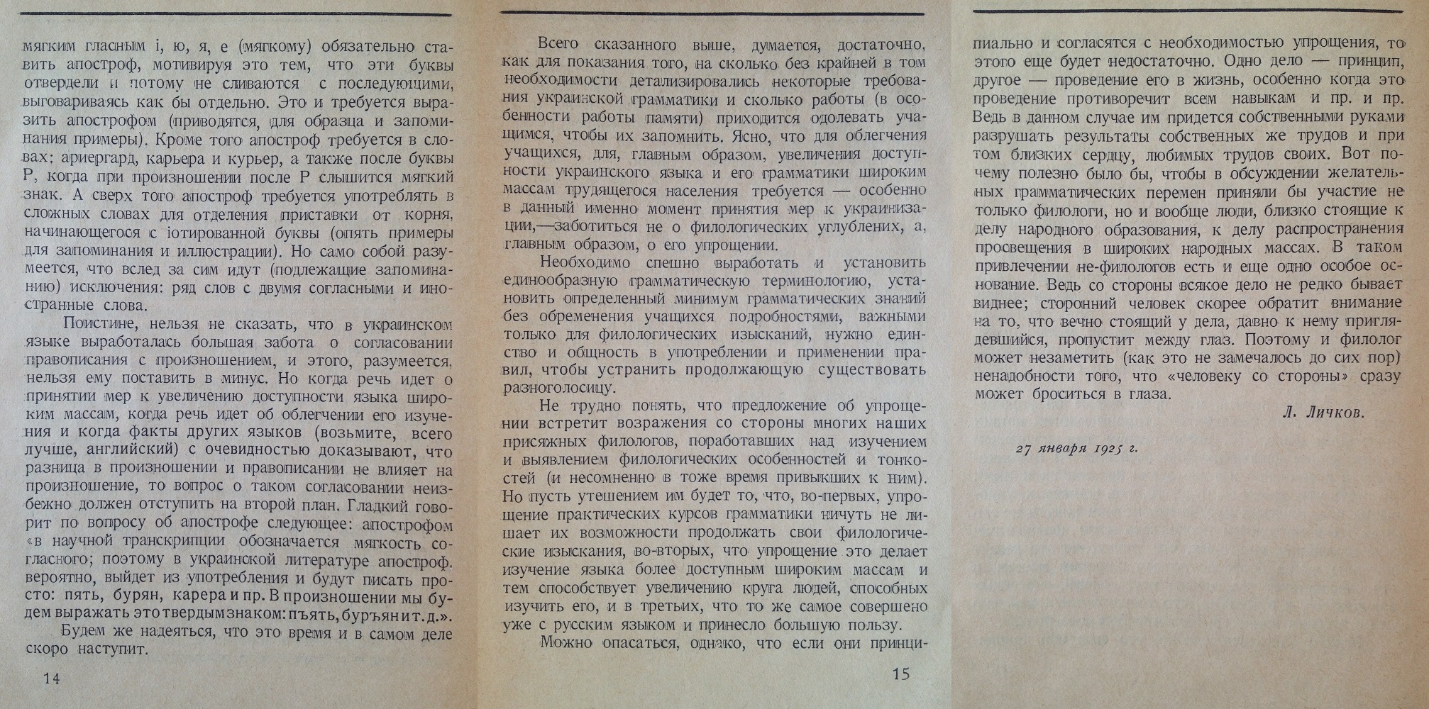 "Кроме того, писать сочинения укр[аинской] мовой, молодой, недоделанной, несравнимо тяжелее, чем русским языком, с его широчайшим лексиконом, с готовыми фразами. Украинскому писателю приходилось тут выполнять двойную работу — тянуть сразу два плуга: писать художественное сочинение и одновременно создавать для него мову"
