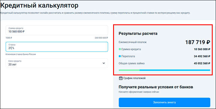 При этом еще 10 миллионов 560 тысяч рублей (чтобы квартиру купить) нужно взять уже под "коммерческий" процент. А это ещё почти 188 тысяч рублей в месяц.