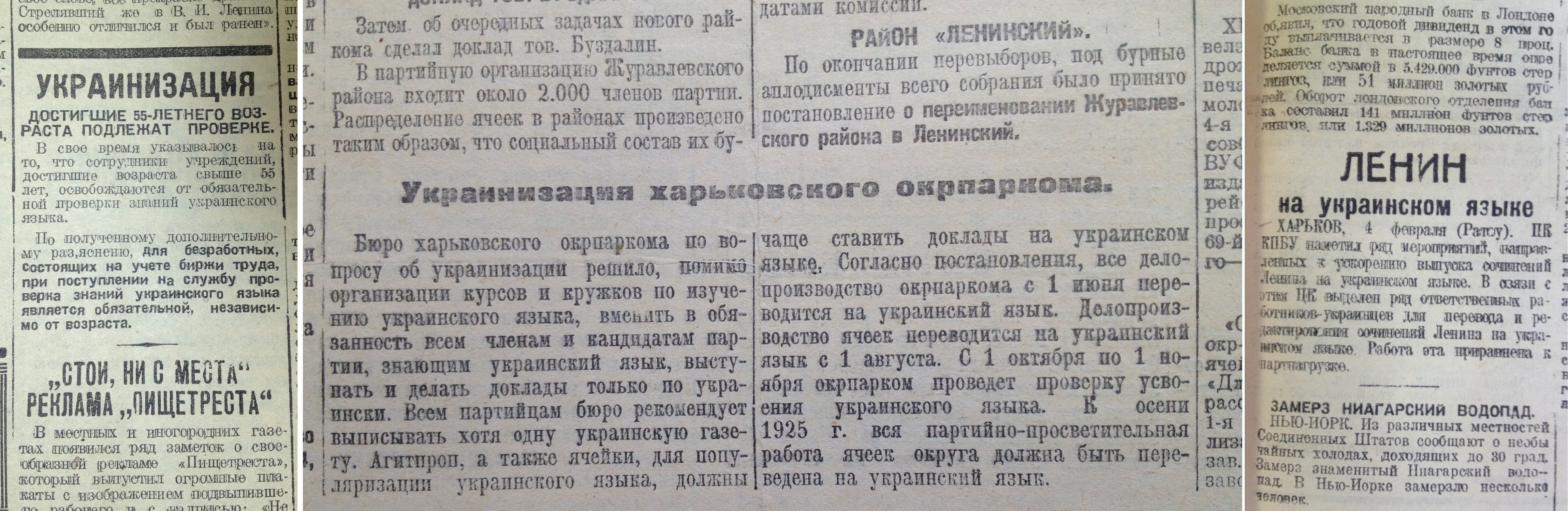 - "...обратить серьезное внимание на правильное проведение украинизации, устранить механическое проведение ее, изгнать петлюровские и другие буржуазно-националистические элементы из партийных и советских организаций, тщательно подбирать и воспитывать украинские большевистские кадры, обеспечить систематическое партийное руководство и контроль за проведением украинизации"