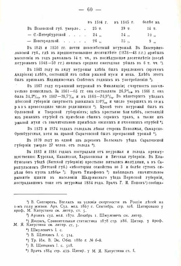 В 1843-44-45 гг. неурожай во многих губерниях Империи — особенно в северо-западной России, где мы имеем пример резкого влияния неурожая на смертность.