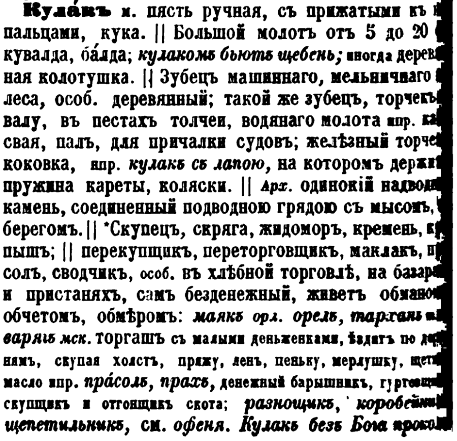 Кулак: Толковый словарь живого великорусского языка. В.И. Даль. 1881