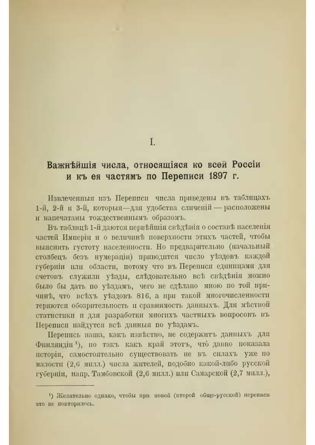 "Перепись наша, как известно, не содержит данных для Финляндии, но так как край этот, что давно показала история, самостоятельно существовать не в силах уже по малости (2,6 милл.) числа жителей"