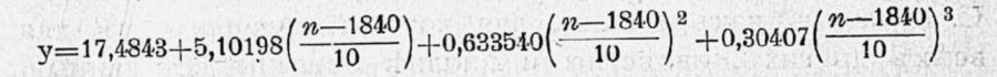 "Это получено без каких бы то ни было предположений и может давать свои непосредственные следствия, первое из коих, выведенное мною еще в 1899 году, относится к числу жителей Штатов для переписи 1900 г., когда не было известно действительное число жителей по 12-й переписи 1900 года. Это число можно вывести по приведенной формуле, подставив 1900 г. По формуле надо ждать на этот год 77,5 миллионов жителей."