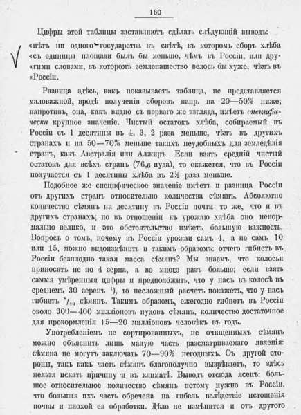 Вывод отсюда ясен: большое относительное количество семян потому нужно в России, что большая их часть обречена на гибель вследствие истощения почвы и плохой её обработки."