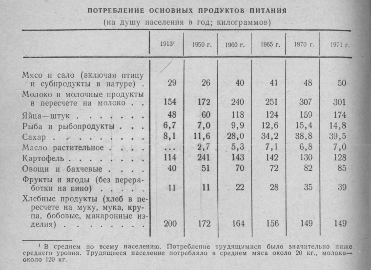 По множеству других показателей СССР РИ очень даже превзошёл. По картошке так вообще более чем двукратный рост.