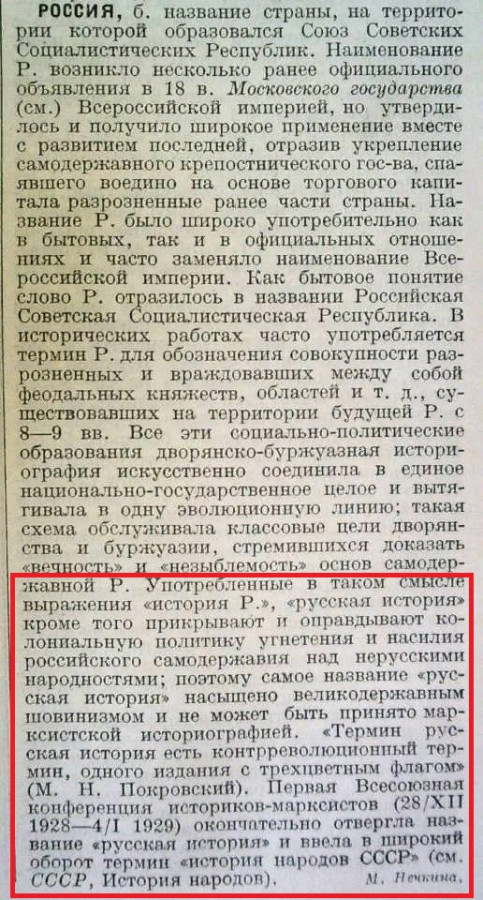 «...мне кажется неправильным, что в наших программах и учебниках после раздела, посвященного образованию русского национального государства, следует глава о превращении русского национального государства в многонациональное государство при Иване IV. Многонациональным государством при Иване IV русское государство быть не могло, оно вобрало некоторое количество народностей, однако удельный вес этих народностей в XVI и XVII ст. до присоединения Закавказья и Средней Азии был еще невелик. Я думаю, что и русское государство XVII в. нельзя назвать многонациональным, это - русское национальное государство в смысле государства русской народности, еще не сложившейся в русскую нацию. При этом термин «национальный» производится от слова «народность». Что это справедливо, мне кажется, указывают слова т. Сталина в известной беседе с Эмилем Людвигом, который назвал государство Петра I национальным государством. Так что эпоха превращения русского национального государства в многонациональное должна быть отнесена к концу XVIII и началу XIX века». (Стенограмма совещания по вопросам истории СССР в ЦК ВКП(б) в 1944 году // Вопросы истории. 1996. № 5-6. С. 78)
