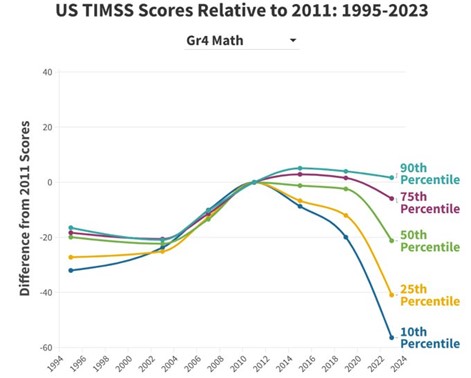 На инфографике – данные по США: результаты тестов IQ молодых американцев значительно снизились с начала 2010-х гг., причём наиболее резкое падение показывают ученики и так с самыми низкими результатами – т. е. на Западе наиболее интенсивно глупеет молодёжь из неблагополучных семей. Как следствие, в некоторых исследованиях уже вбрасывается мысль, что хотят учиться сейчас лишь выходцы с Востока – из Азии (китайцы, корейцы, японцы, вьетнамцы и т. п.), и поэтому развитым странам Запада имеет смысл охотиться лишь за мигрантами из этого макрорегиона.
