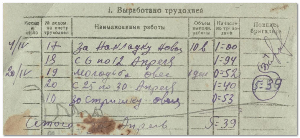 Для этого были введены "трудодни", т.е. мера измерения вклада колхозника в общее дело. Причем это не рабочий день, в прямом понимании. За один день колхозник мог выработать несколько трудодней, в зависимости от тяжести и интенсивности труда.