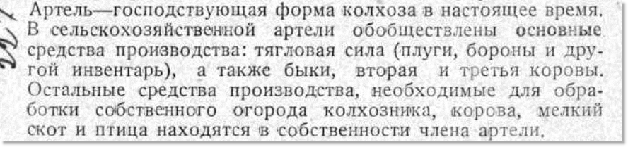 На 1932 год сельскохозяйственные артели были наиболее массовыми колхозами, в том же издании об этом сказано следующее...