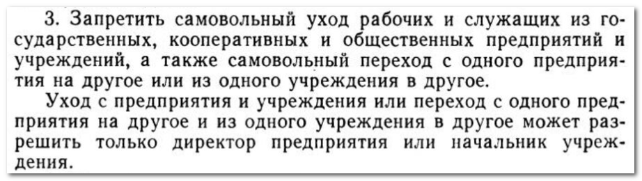 Дескать ну вот, вот же! Железобетонное доказательство принудительного труда в СССР! Это же "советское крепостное право", полный запрет на увольнение и уход с работы! Вот они, ваши большевики, работать заставляли простой народ, принудительно...