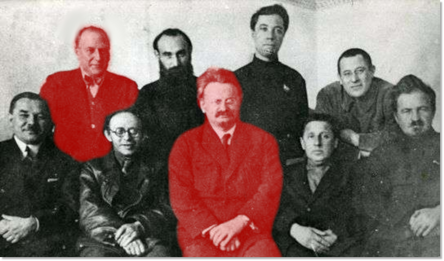 Раковский был очень хорошо знаком с Троцким, на фото выделены: в центре Троцкий, стоит Раковский.