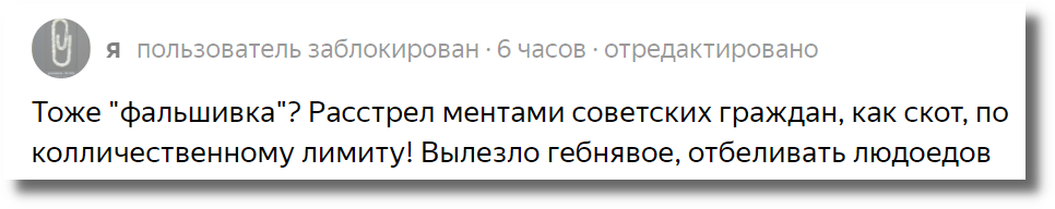 Под статьей "Как промывали мозги, после развала СССР - фильм Петра Тодоровского: яркий пример лжи и фальсификации" появился очень интересный комментарий, в котором человек доказывал, что в СССР могли расстрелять за что угодно, к примеру, за распитие алкоголя в общественных местах.