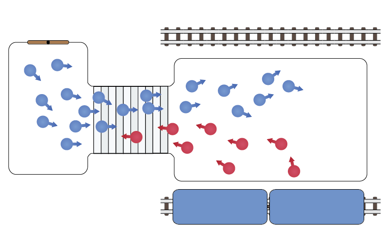 Когда ко входу прибывает автобус, входящий поток усиливается. Аналогично бывает с выходящим потоком в момент прибытия поезда. События эти, однако, далеко не всегда происходят одновременно, поэтому, например, входящие могут заметить, что внутрь идёт куча народу, а наружу — почти никого.