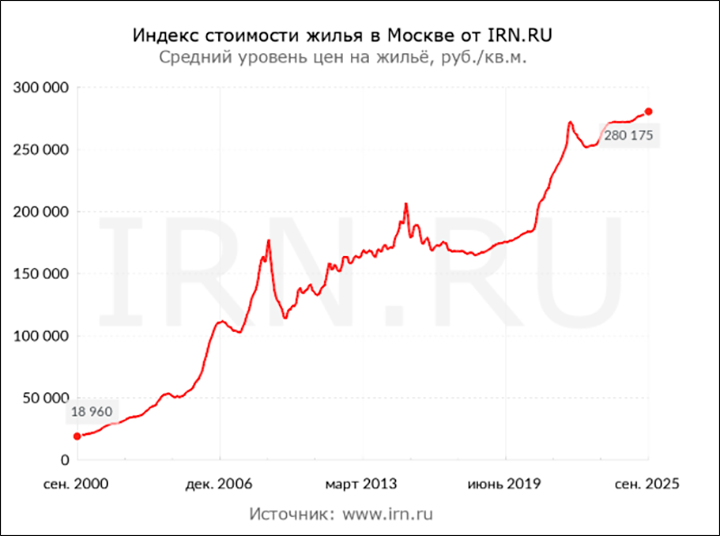 За последние четверть века цены на жилье в Москве выросли в 14,7 раза. Доллар, для сравнения, "всего" втрое.