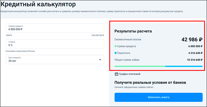 А ещё жильё становится менее доступным из-за высокой ключевой ставки. Сейчас она 17% годовых. В итоге, по данным Центробанка, средняя ипотечная ставка — 21,6%. Давайте посчитаем: если взять ипотечный кредит на сумму 10 миллионов рублей, то за 20 лет придётся переплатить свыше 32 миллионов. А общая сумма, которую вы отдадите банку, свыше 42 миллионов! Конечно, при таком раскладе многие просто не решаются брать кредит. Нет кредита — нет своего жилья. Нет жилья — хуже с демографией. Как рожать детей, если их буквально негде растить?