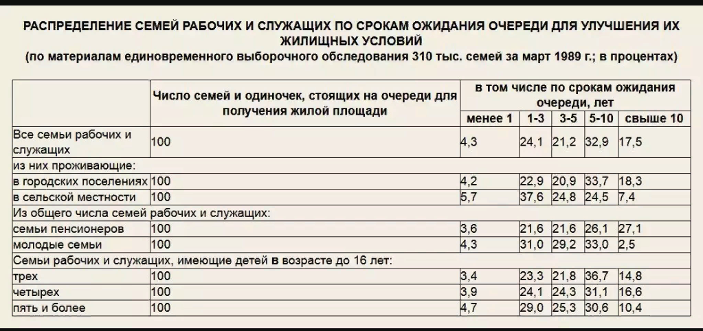 О сроках этого ожидания можно судить по данным статсборника "Социальное развитие СССР" за 1989 год: