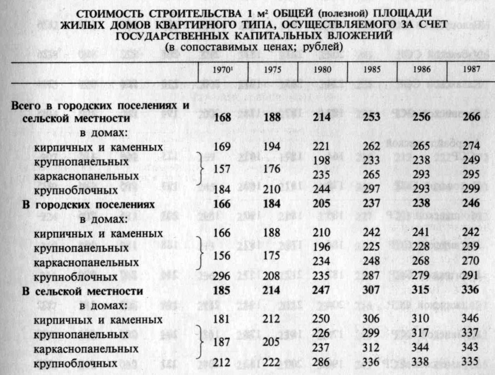 Для понимания заглянем в другой справочник "Капитальное строительство СССР", где имеются данные по стоимости 1 кв. метра жилья: