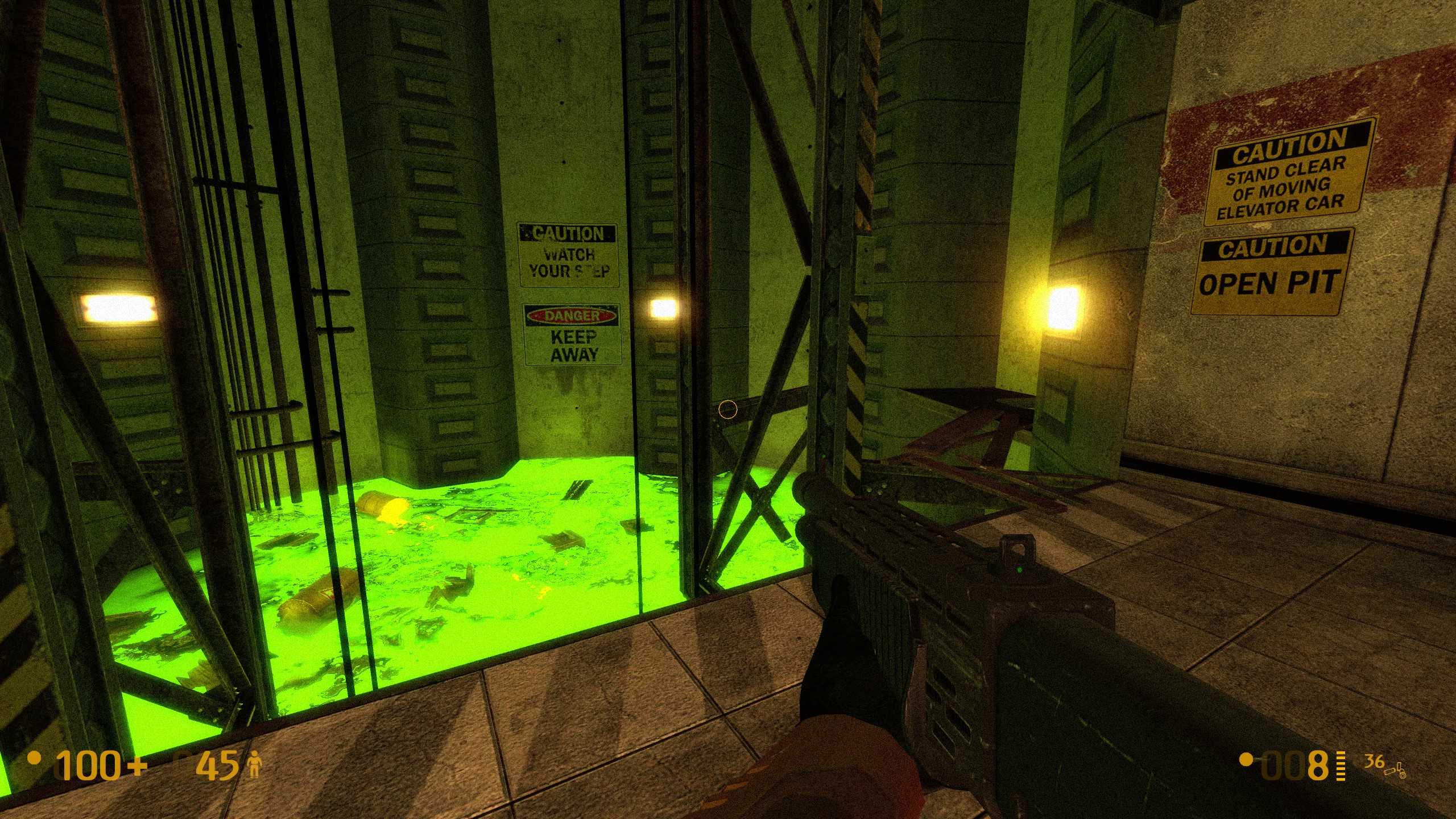 А вот такие моменты не люблю: надо было успеть выпрыгнуть из лифта сюда, а сам лифт падает в зелёную жижу. Ничего сложного, но если знаешь заранее. А откуда знать-то?