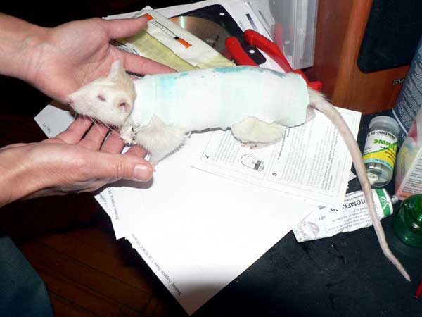 Крысик был найден на улице, покусанный дикими сородичами. Вот так он выглядел: